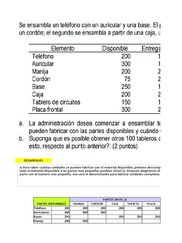 parte con el número más pequeño, ese será el determinante para fabricar unidades completas.