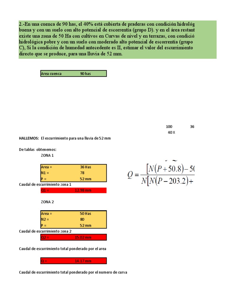 HALLEMOS: El escurrimiento para una lluvia de 52 mm