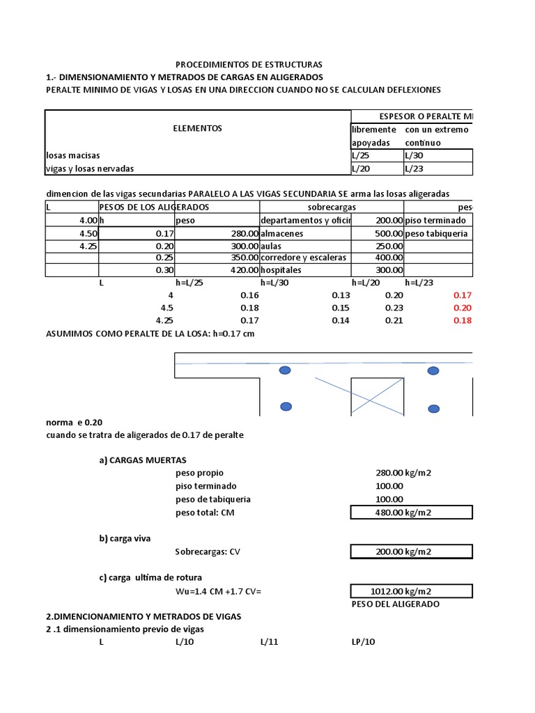 1.- DIMENSIONAMIENTO Y METRADOS DE CARGAS EN ALIGERADOS