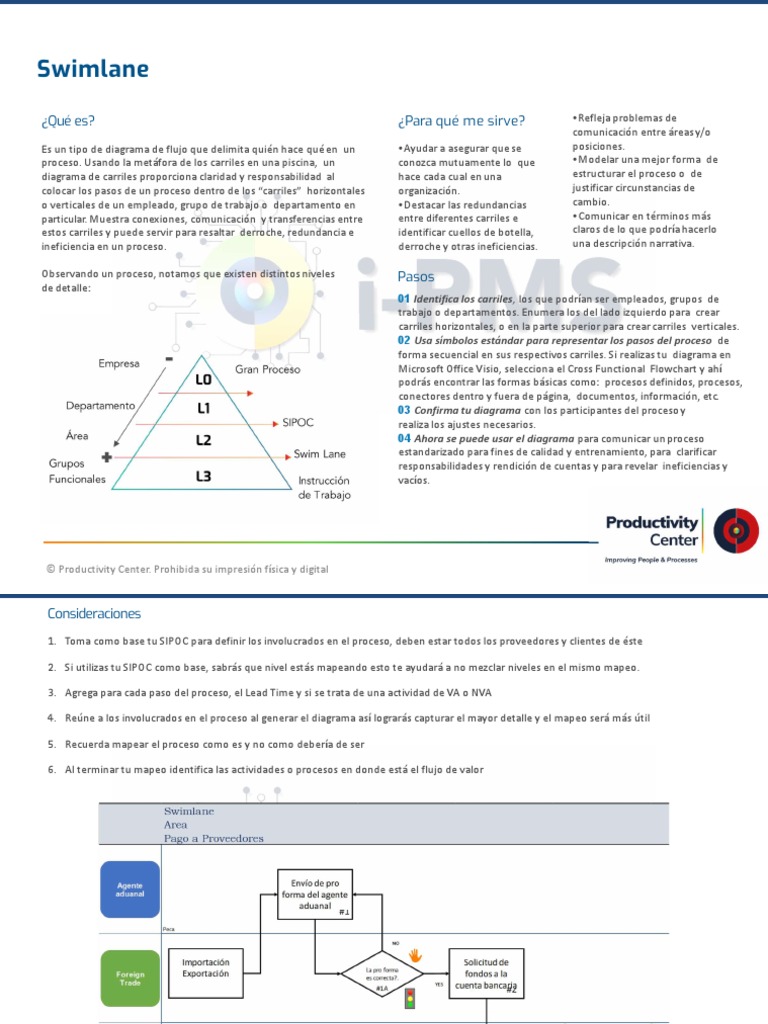 estos carriles y puede servir para resaltar derroche, redundancia e identificar cuellos de botella, claros de lo que podría hacerlo