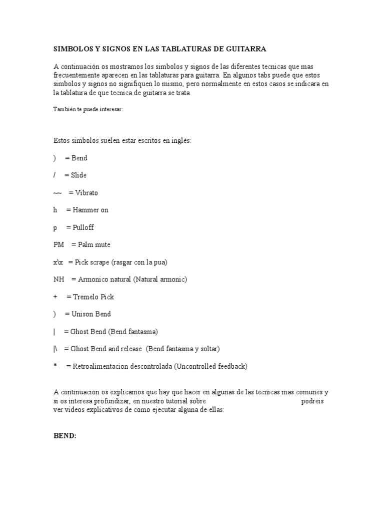 SIMBOLOS Y SIGNOS EN LAS TABLATURAS DE GUITARRA
