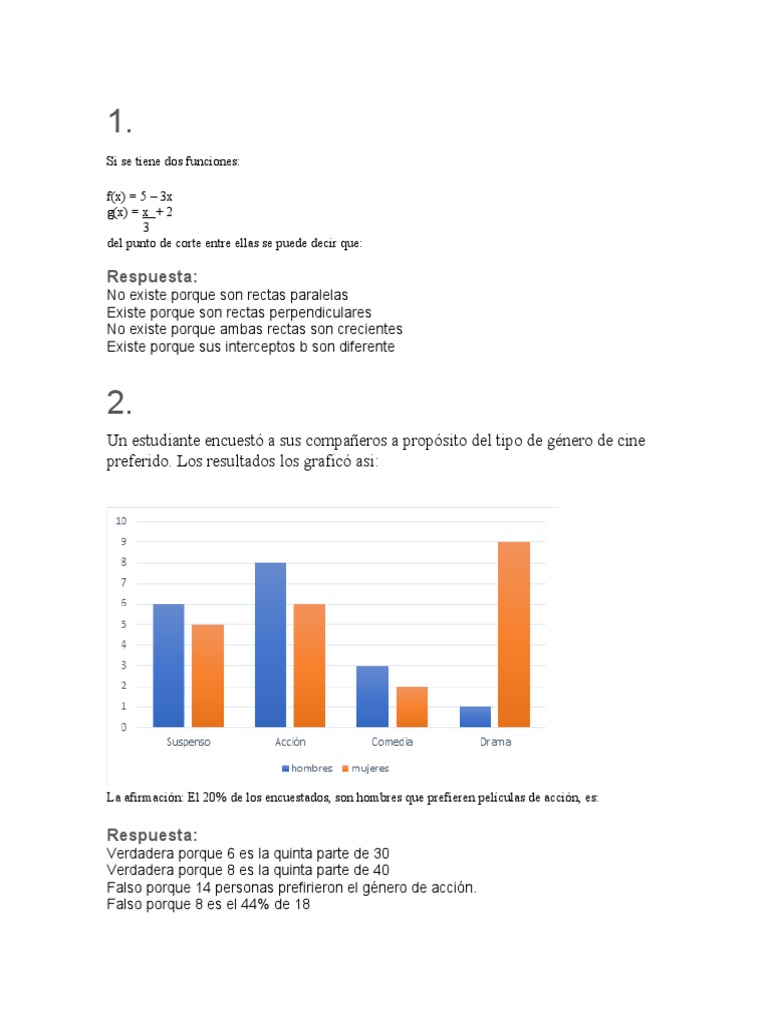 Un estudiante encuestó a sus compañeros a propósito del tipo de género de cine