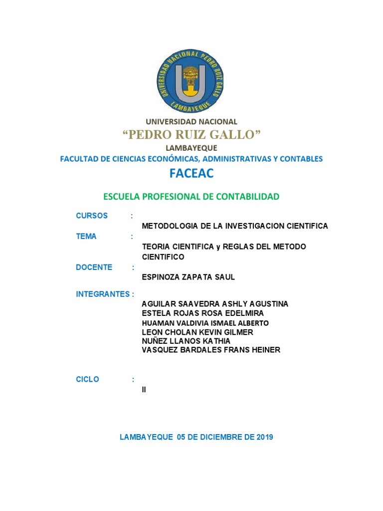 TEORIA CIENTIFICA y REGLAS DEL METODO