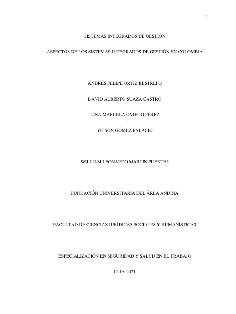 ASPECTOS DE LOS SISTEMAS INTEGRADOS DE GESTIÓN EN COLOMBIA