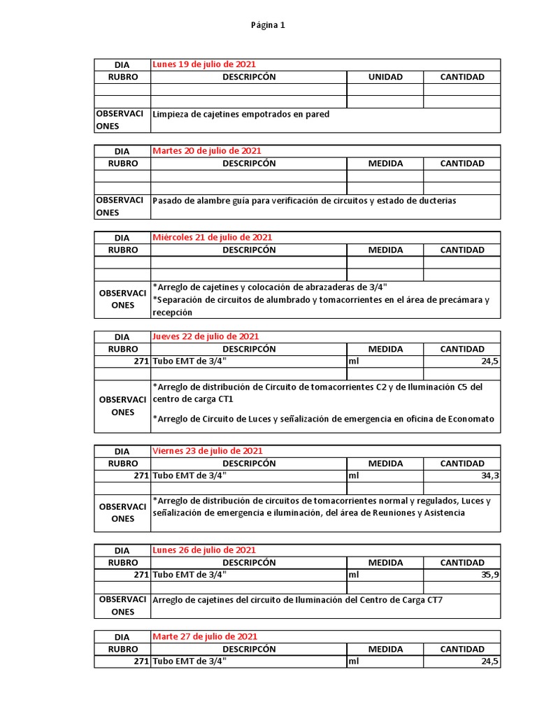 OBSERVACI Arreglo de cajetines del circuito de Iluminación del Centro de Carga CT7