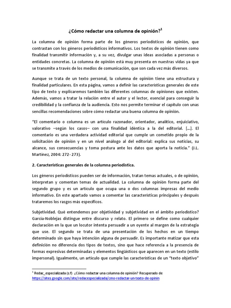 Redac_especializada (s.f) ¿Cómo redactar una columna de opinión? Recuperado de