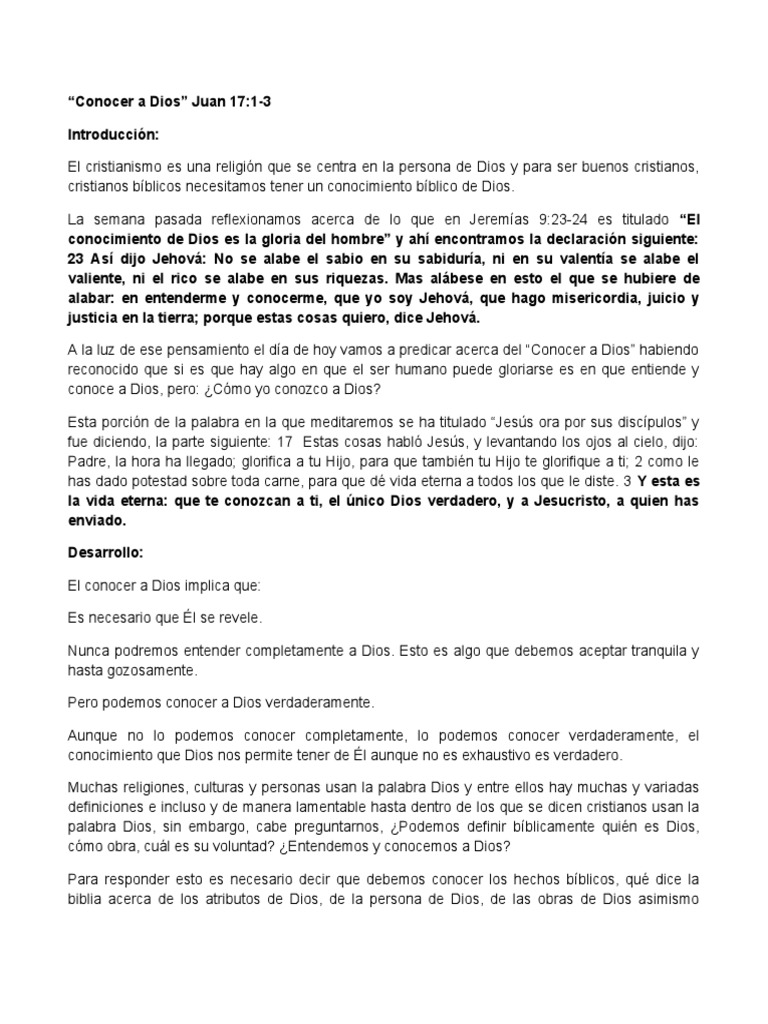 “Conocer a Dios” Juan 17:1-3