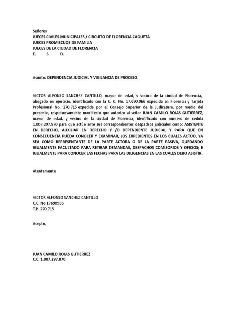 presente, respetuosamente manifiesto que autorizo al señor JUAN CAMILO ROJAS GUTIERREZ,