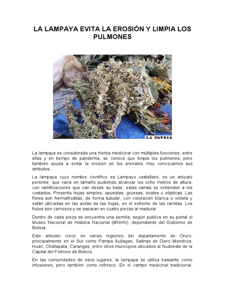 La lampaya es considerada una hierba medicinal con múltiples funciones, entre