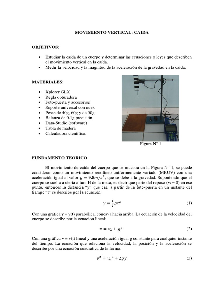 El movimiento de caída del cuerpo que se muestra en la Figura N° 1, se puede