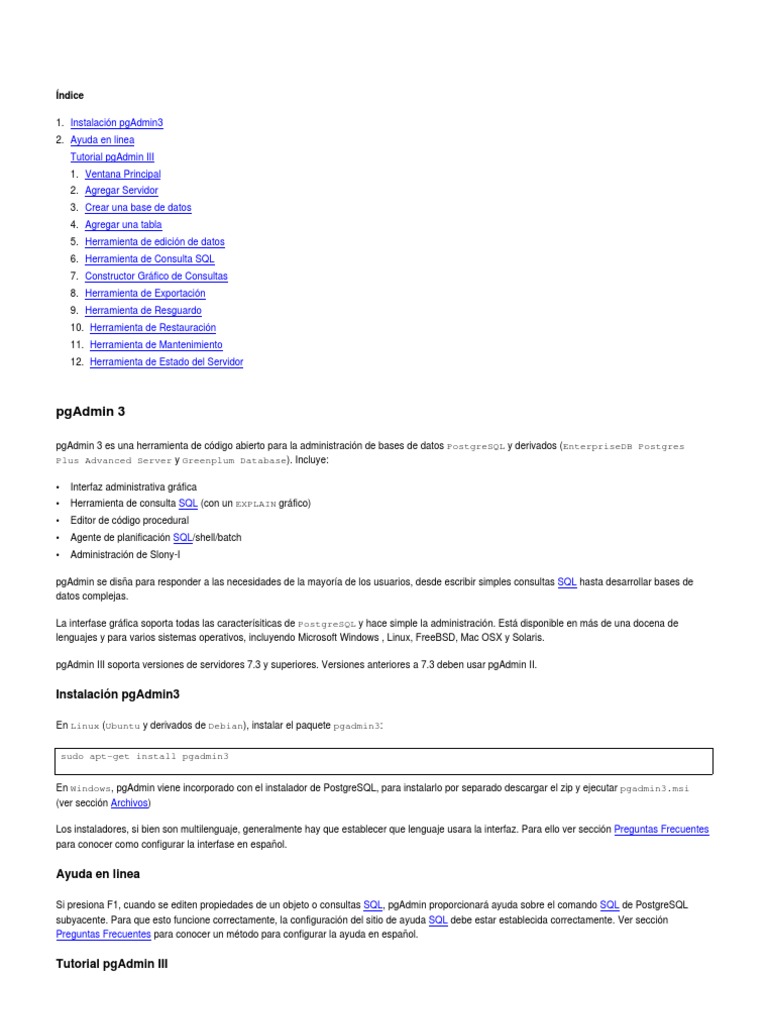 Este es un manual instructivo básico (paso a paso) en español (castellano) para usuarios principiantes que deseen conocer la herramienta pgAdmin III.