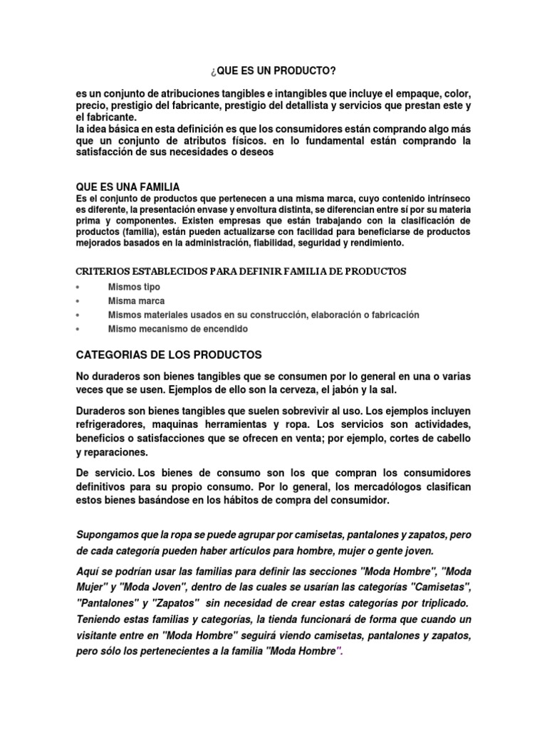 Teniendo estas familias y categorías, la tienda funcionará de forma que cuando un
