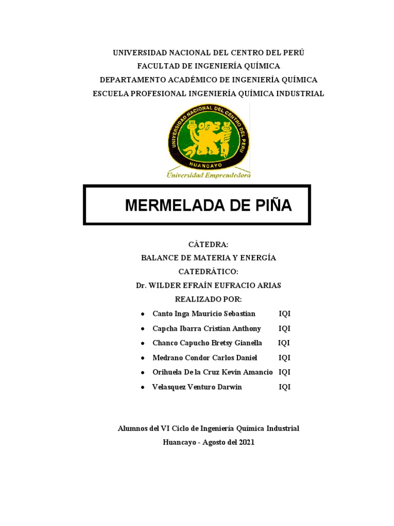 elaboración de la mermelada de piña tanto teórico como práctico.