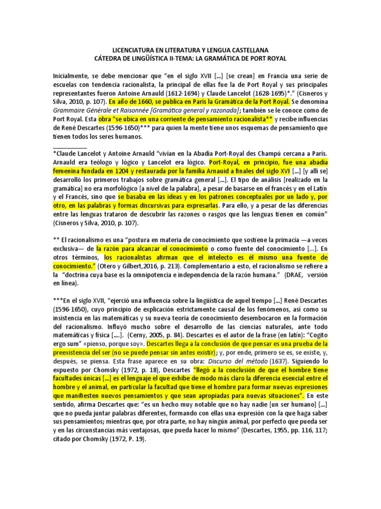 Gramática de la Port-Royal como uno de sus propios precursores.” (Cerny, 2005, p. 85).