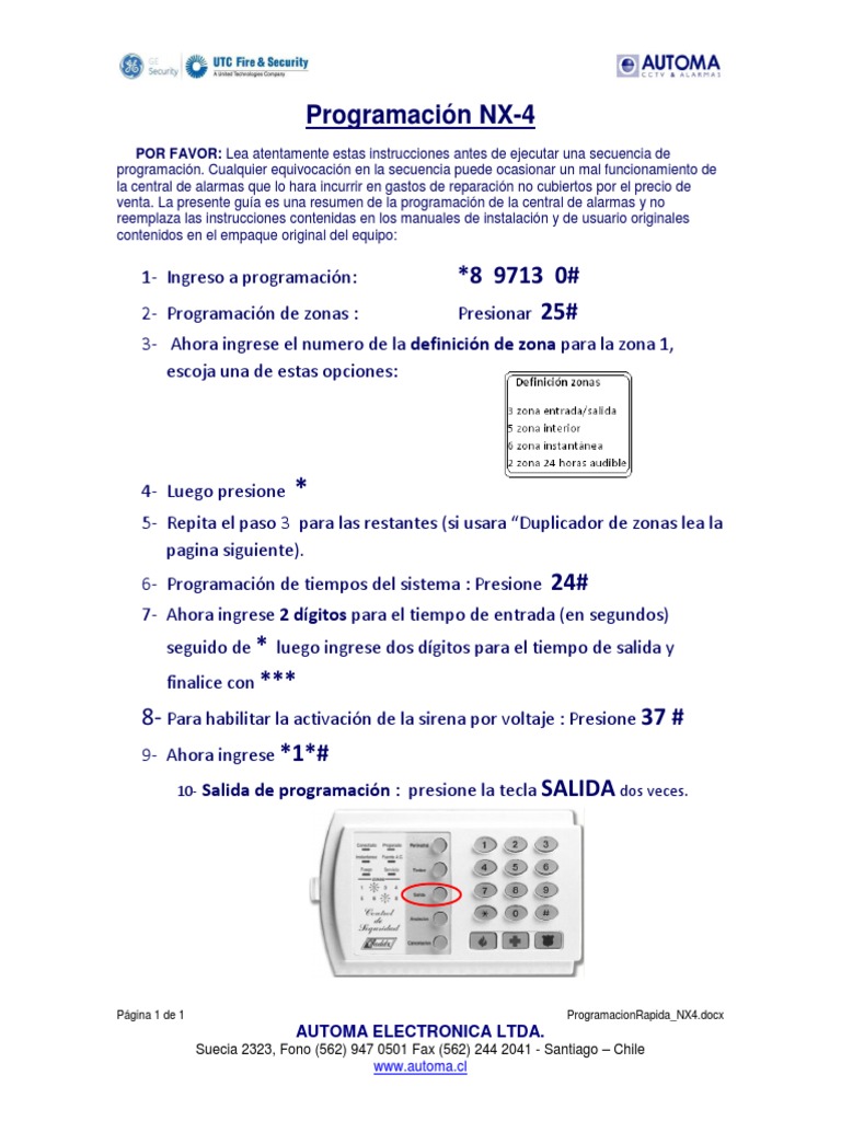 10- Salida de programación : presione la tecla SALIDA dos veces.