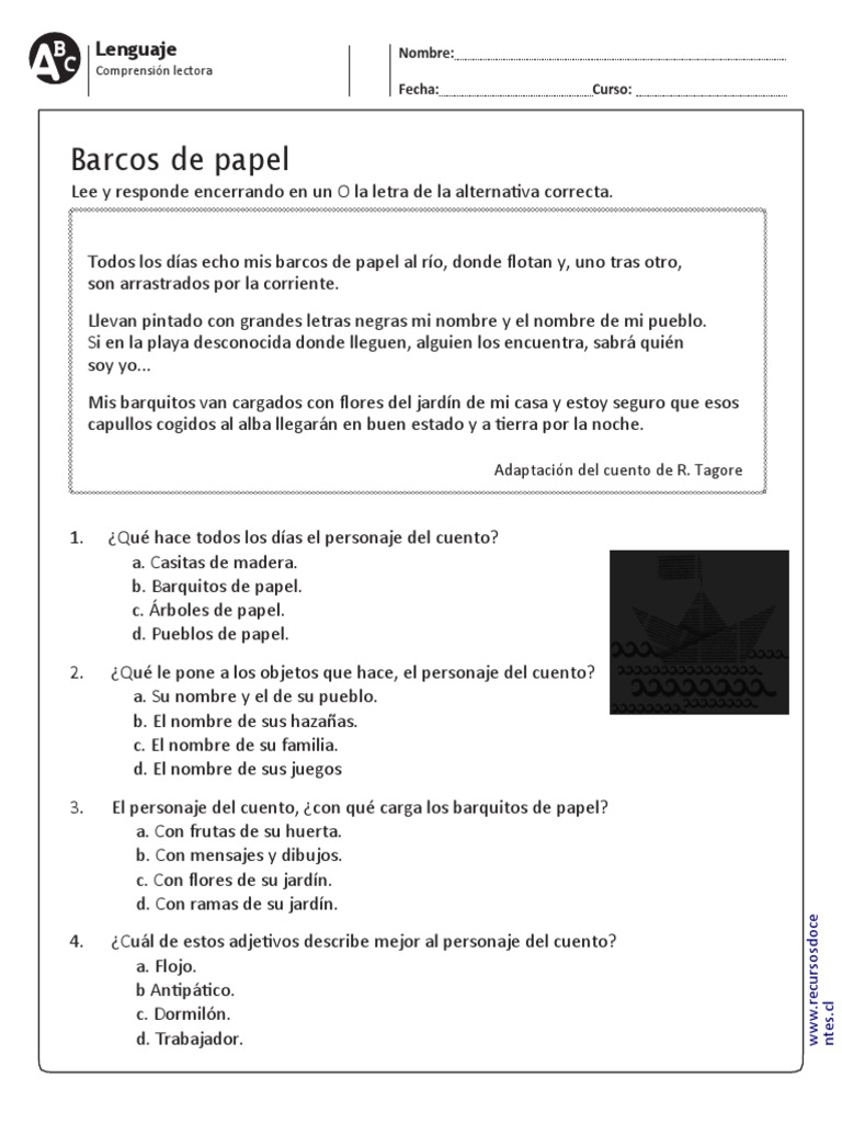 3. El personaje del cuento, ¿con qué carga los barquitos de papel?