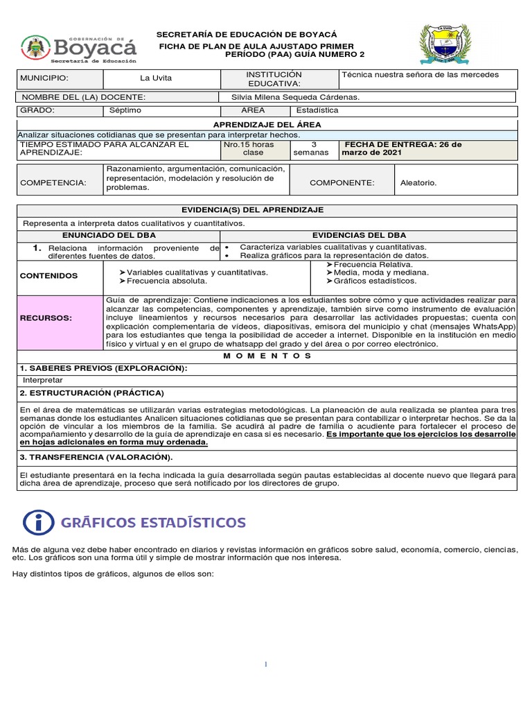 NOMBRE DEL (LA) DOCENTE: Silvia Milena Sequeda Cárdenas.