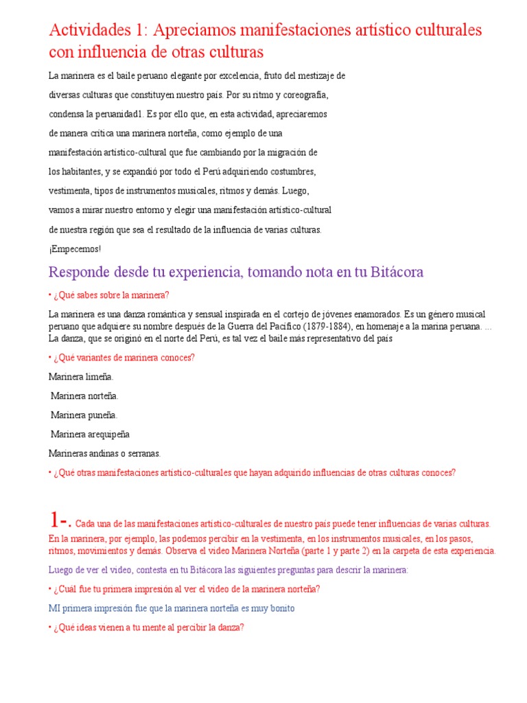 Actividades 1: Apreciamos manifestaciones artístico culturales