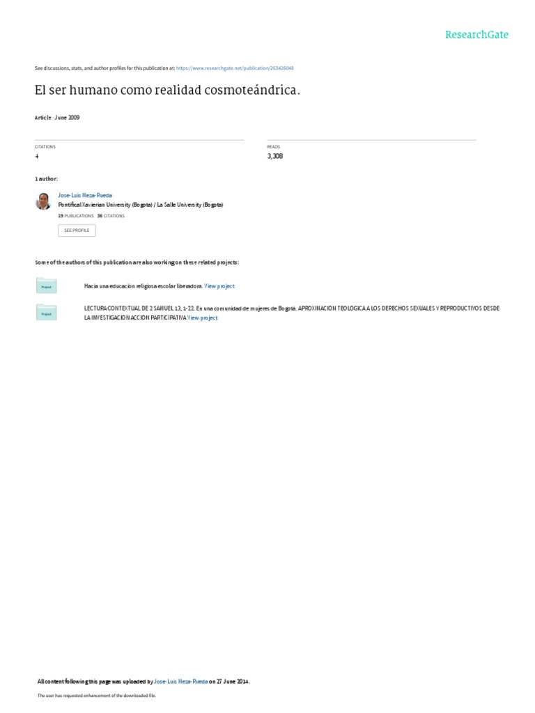 El ser humano como realidad cosmoteándrica Cuestiones Teológicas, Vol. 36, No. 85 p. 59 - 80