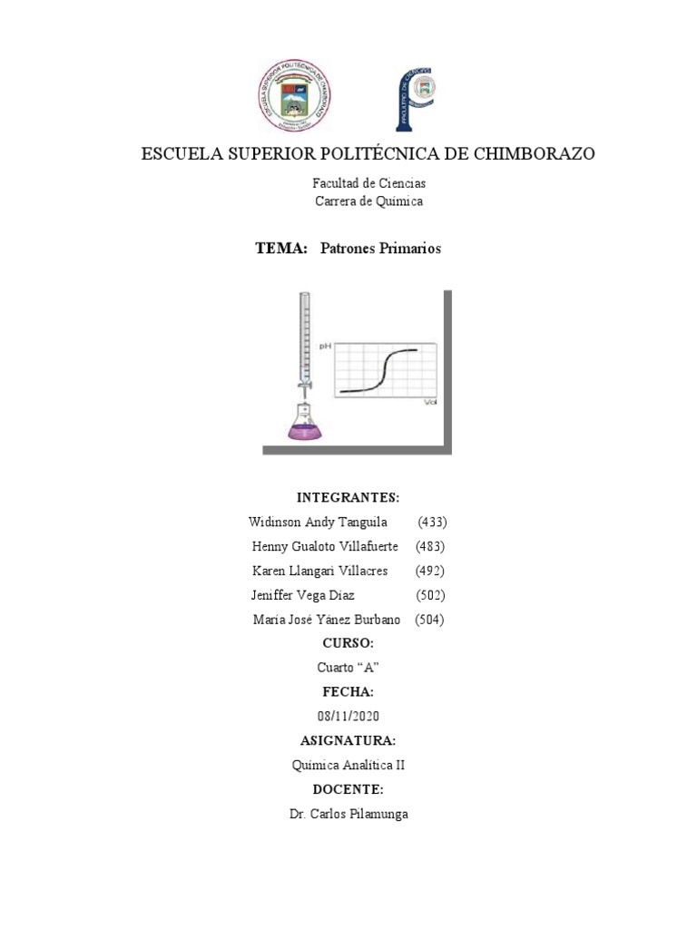 TEMA: PATRONES PRIMARIOS USADOS EN VOLUMETRIA