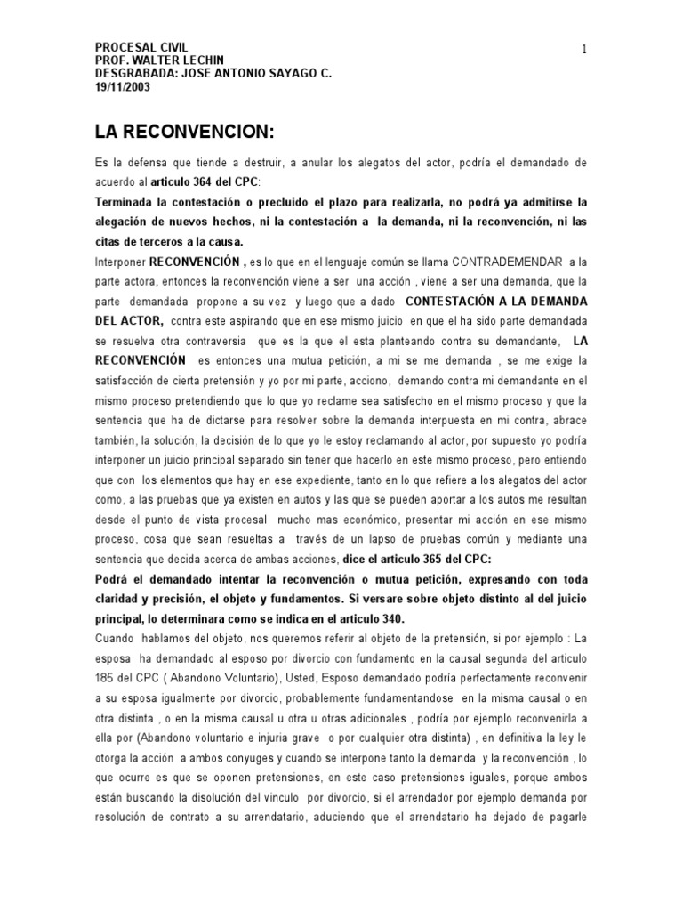 DEL PROBLEMA? Porque cuando hay reconvención, ya ustedes deben de haberse dado cuenta,