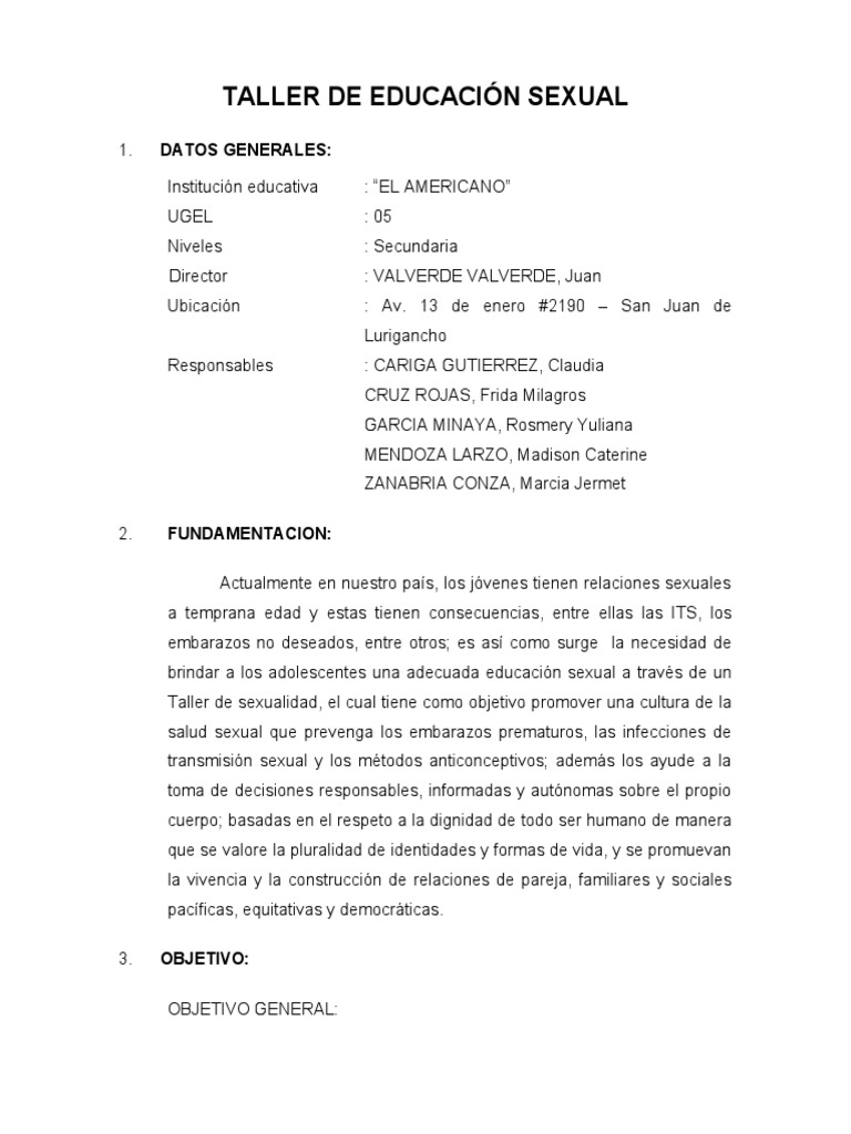 TALLER DE EDUCACIÓN SEXUAL