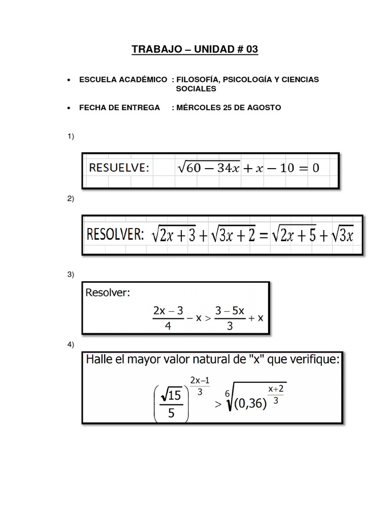 El documento es un formato de trabajo para la Unidad #03 de la Escuela Académica de Filosofía, Psicología y Ciencias Sociales. La fecha de entrega está establecida para el miércoles 25 de agosto. No se proporciona contenido adicional en el documento.