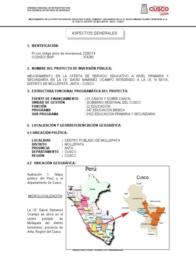 MEJORAMIENTO EN LA OFERTA DE SERVICIO EDUCATIVO A NIVEL PRIMARIA Y SECUNDARIA EN LA I.E. DAVID SAMANEZ OCAMPO INTEGRADO A LA