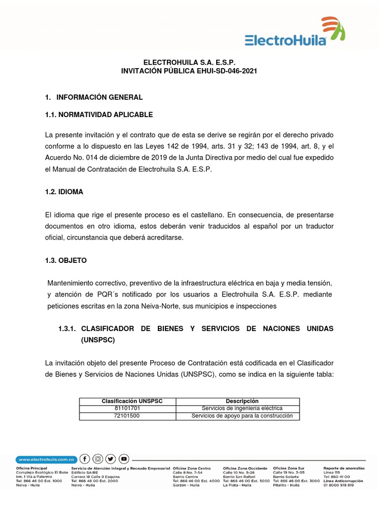el Manual de Contratación de Electrohuila S.A. E.S.P.