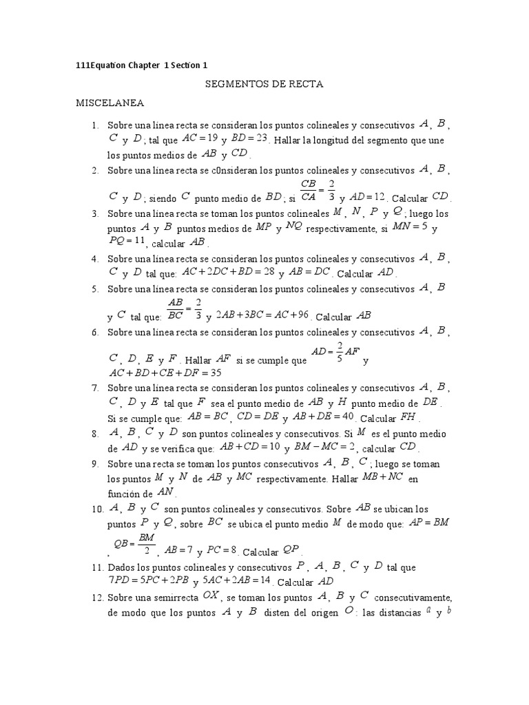 1. Sobre una línea recta se consideran los puntos colineales y consecutivos A , B ,