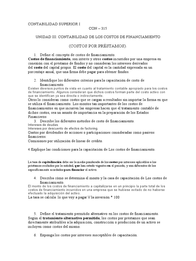 1. Define el concepto de costos de financiamiento.