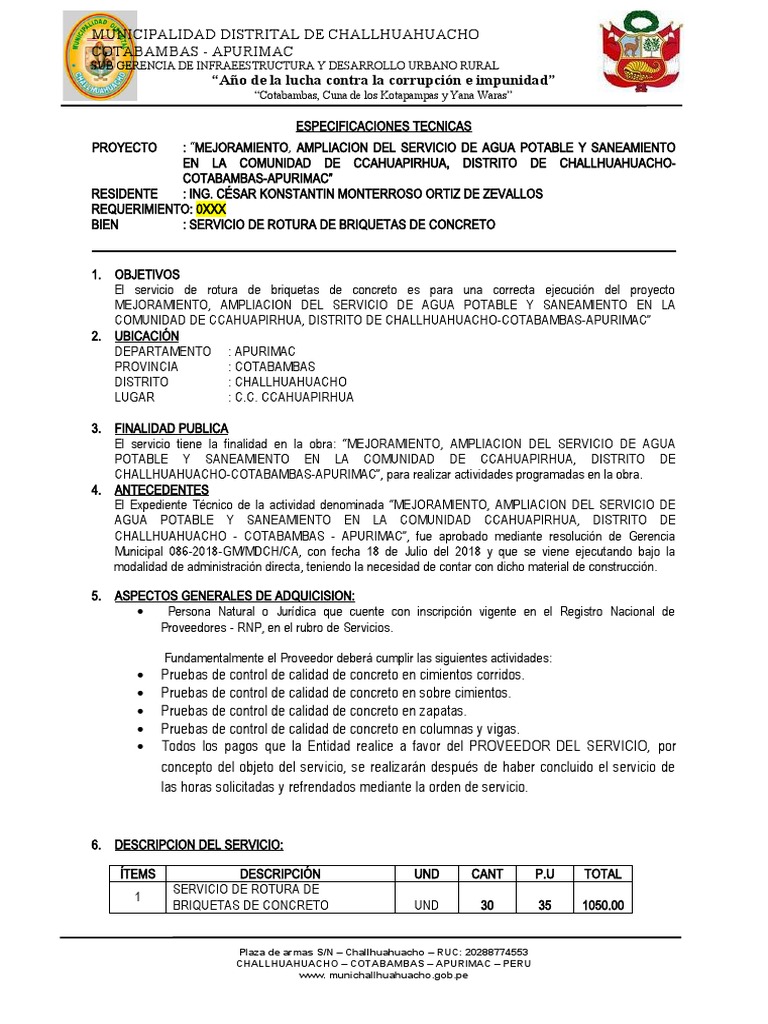 CHALLHUAHUACHO - COTABAMBAS - APURIMAC”, fue aprobado mediante resolución de Gerencia