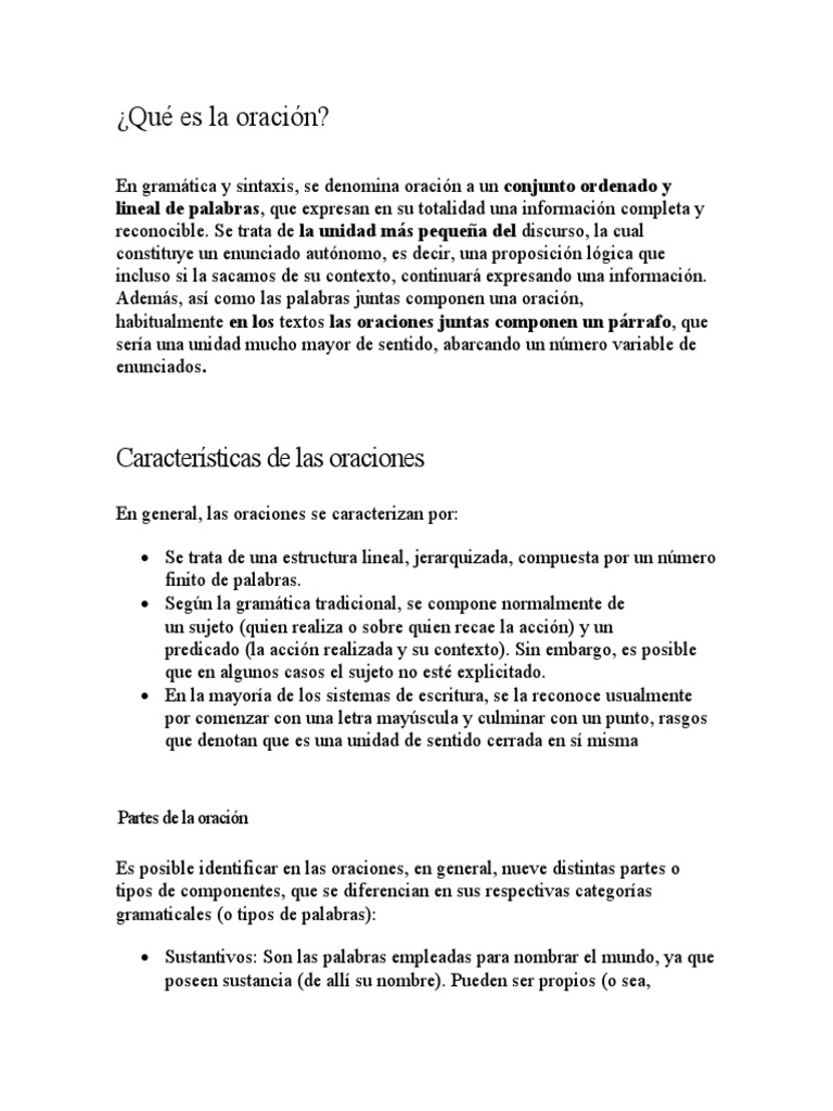 En gramática y sintaxis, se denomina oración a un conjunto ordenado y