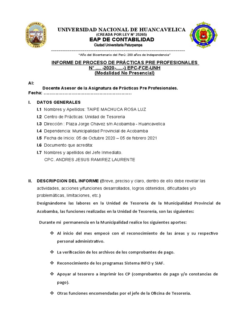 I.1 Nombres y Apellidos: TAIPE MACHUCA ROSA LUZ