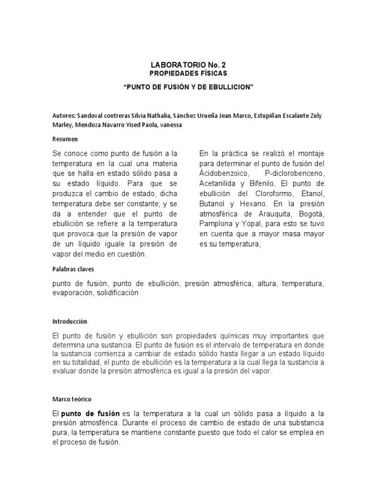 donde se realizó el estudio del punto de fusión y ebullición de los diferentes