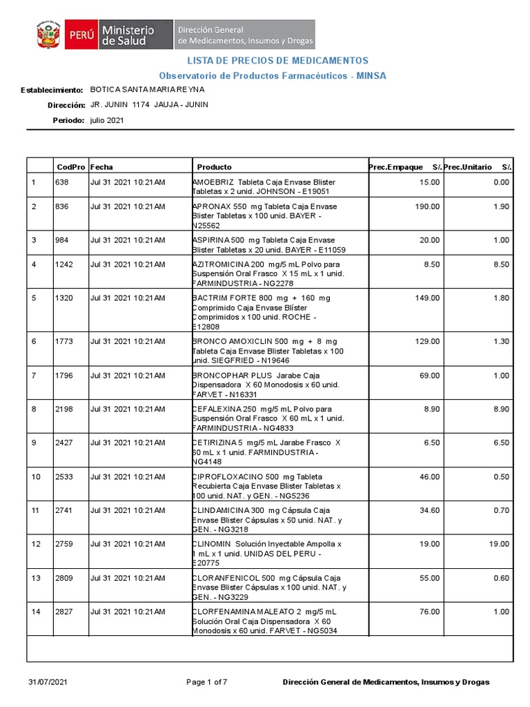 31/07/2021 Page 1 of 7 Dirección General de Medicamentos, Insumos y Drogas