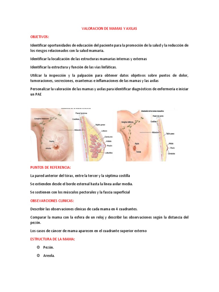 Personalizar la valoración de las mamas y axilas para identificar diagnósticos de enfermería e iniciar