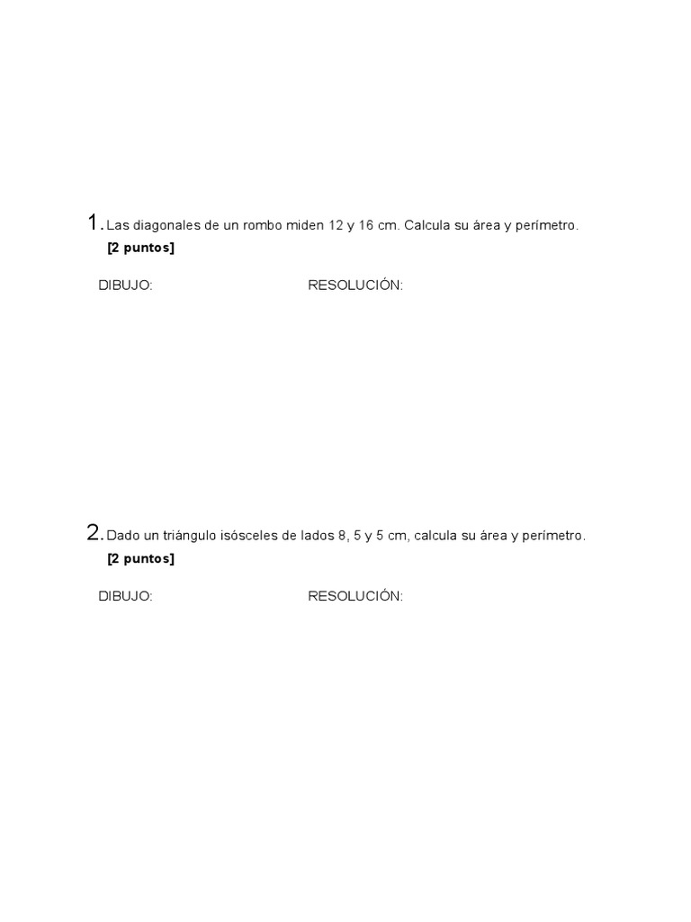 1. Las diagonales de un rombo miden 12 y 16 cm. Calcula su área y perímetro.
