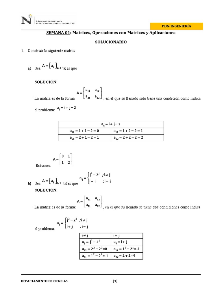 SEMANA 01: Matrices, Operaciones con Matrices y Aplicaciones