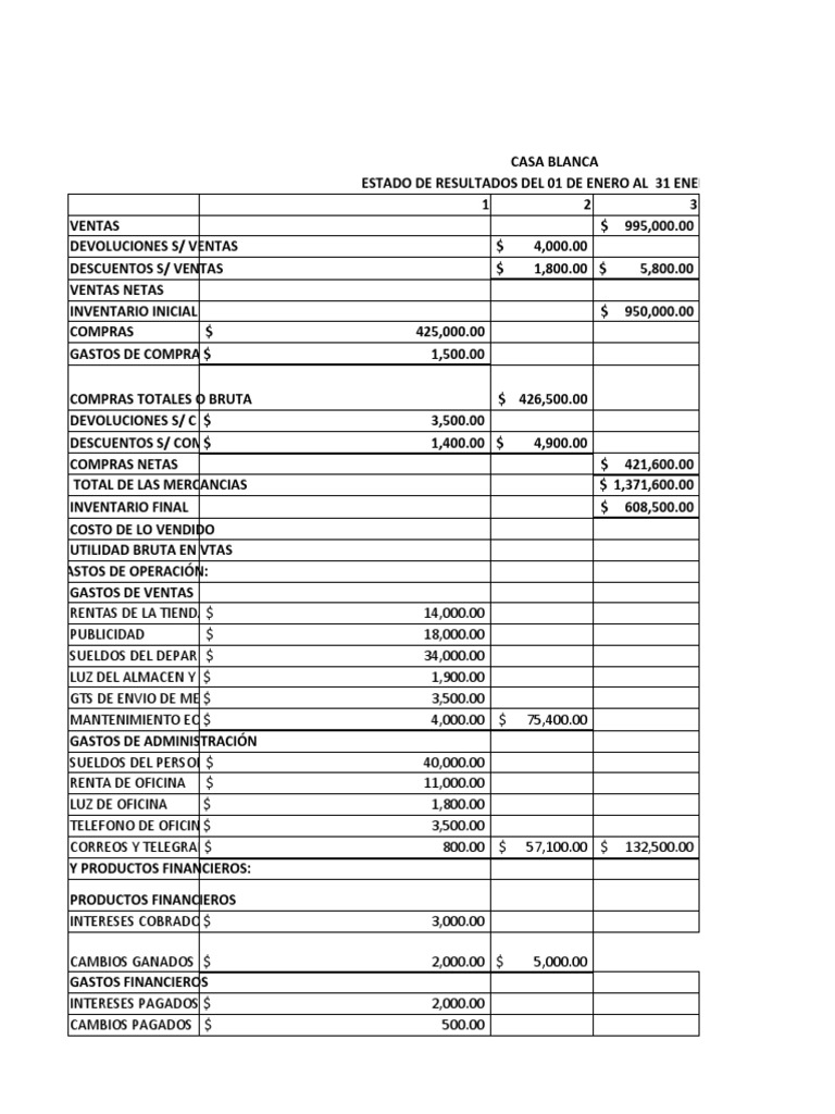 ESTADO DE RESULTADOS DEL 01 DE ENERO AL 31 ENERO 2019