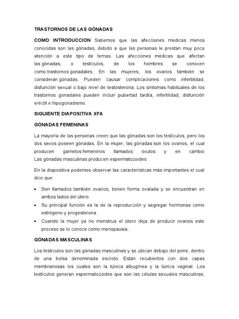 como trastornos gonadales. En las mujeres, los ovarios también se