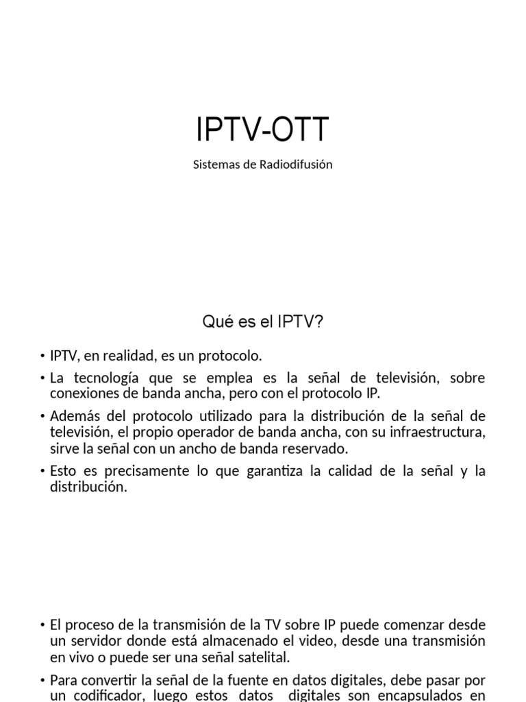 • Antes de ser distribuidos al usuario final, la señal de IPTV debe ser