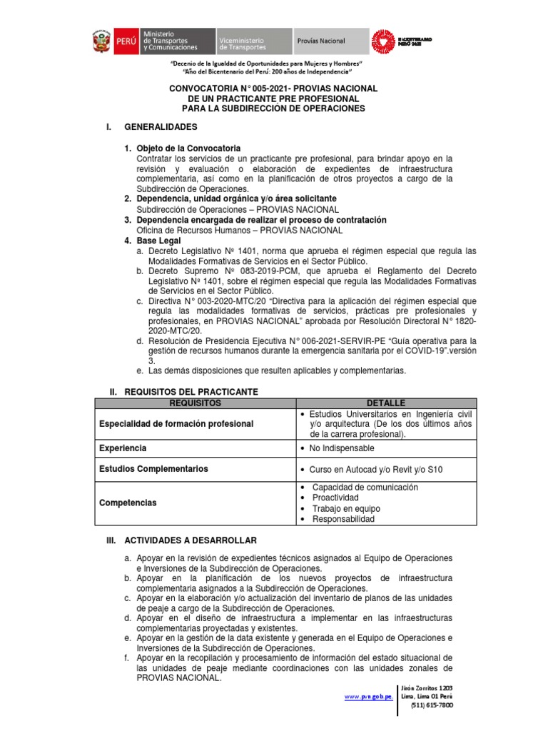 CONVOCATORIA N° 005-2021- PROVIAS NACIONAL
