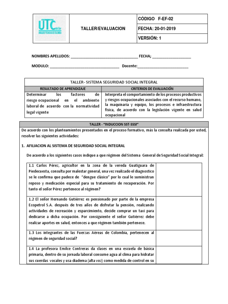 TALLER- SISTEMA SEGURIDAD SOCIAL INTEGRAL