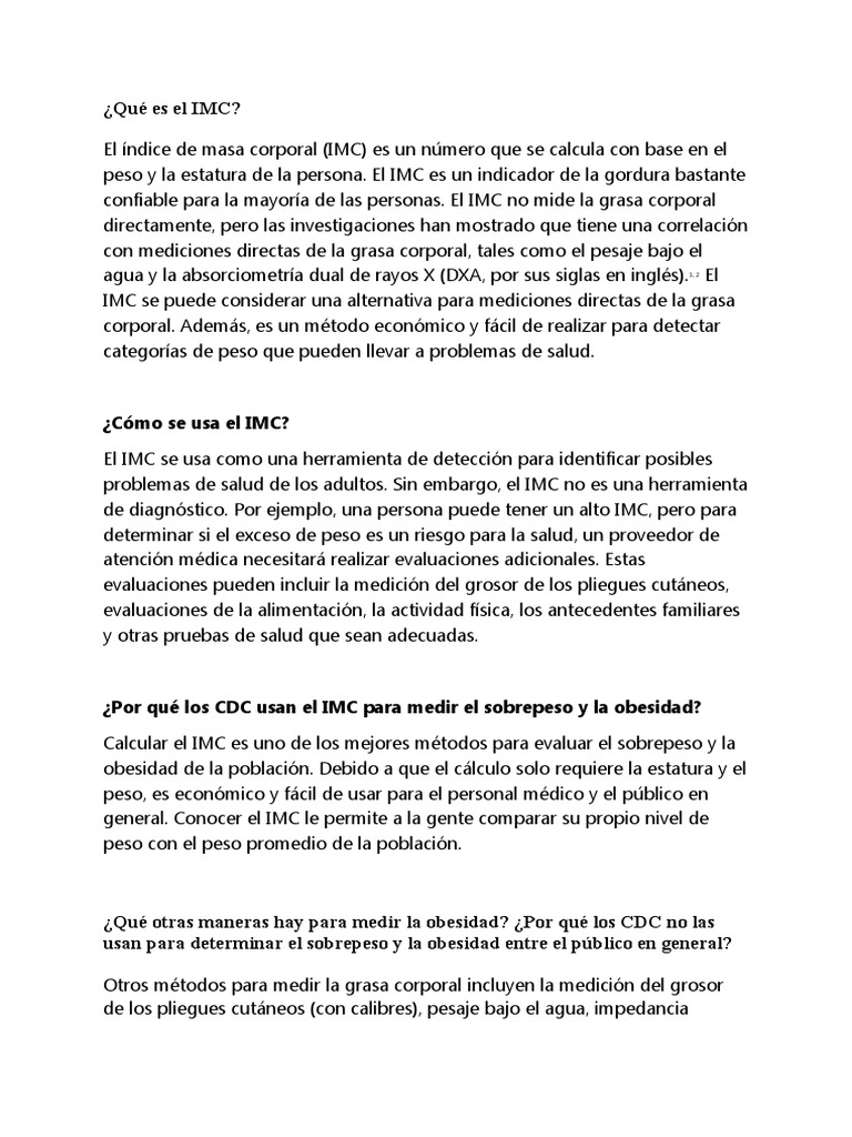 confiable para la mayoría de las personas. El IMC no mide la grasa corporal