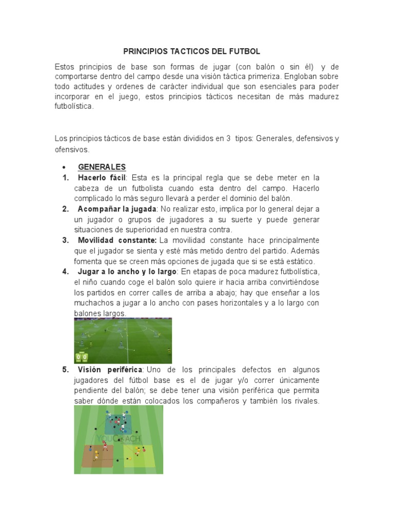 Estos principios de base son formas de jugar (con balón o sin él) y de