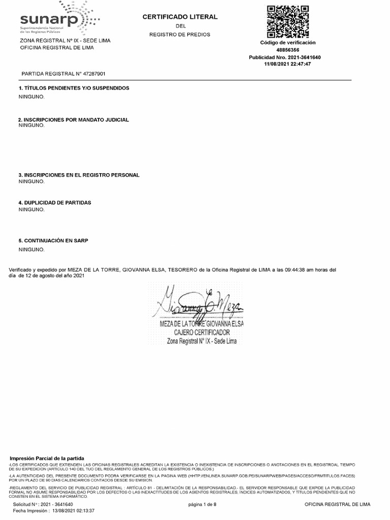 Solicitud N° : 2021 - 3641640 página 8 de 8 OFICINA REGISTRAL DE LIMA