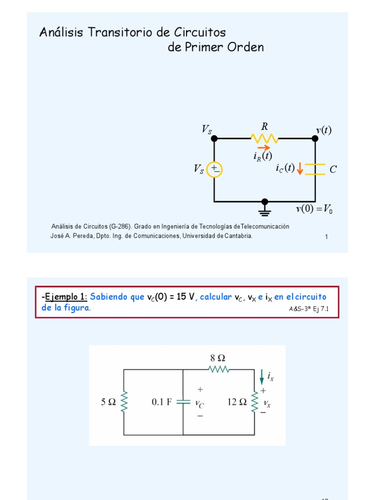 -Ejemplo 1: Sabiendo que vC(0) = 15 V, calcular vC, vX e iX en el circuito