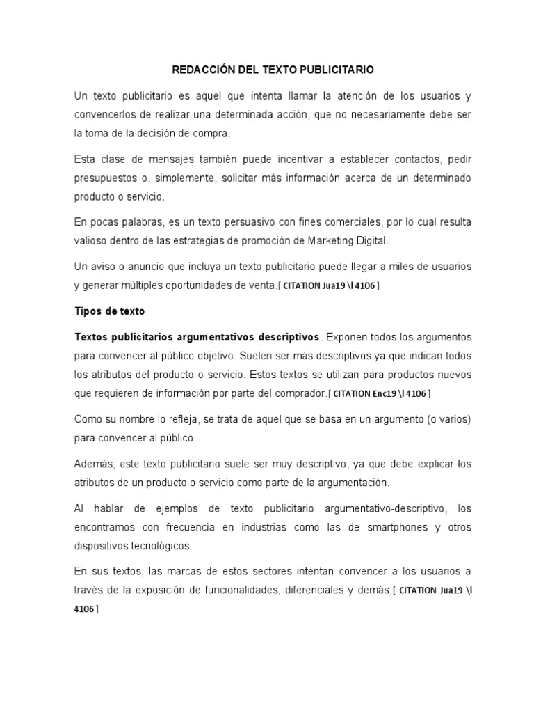 Un texto publicitario es aquel que intenta llamar la atención de los usuarios y