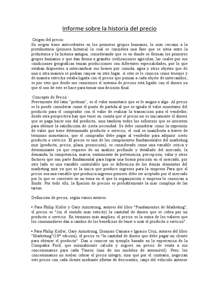 Informe sobre la historia del precio